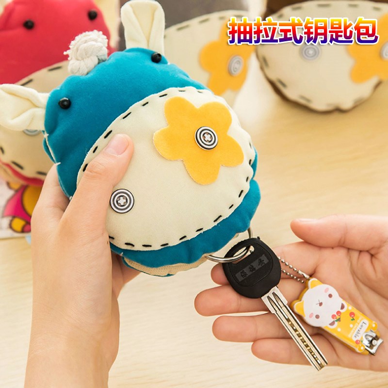 / 卡通車鑰匙扣女韓國個性創意可愛小清新布藝毛絨抽繩鑰匙包多功能