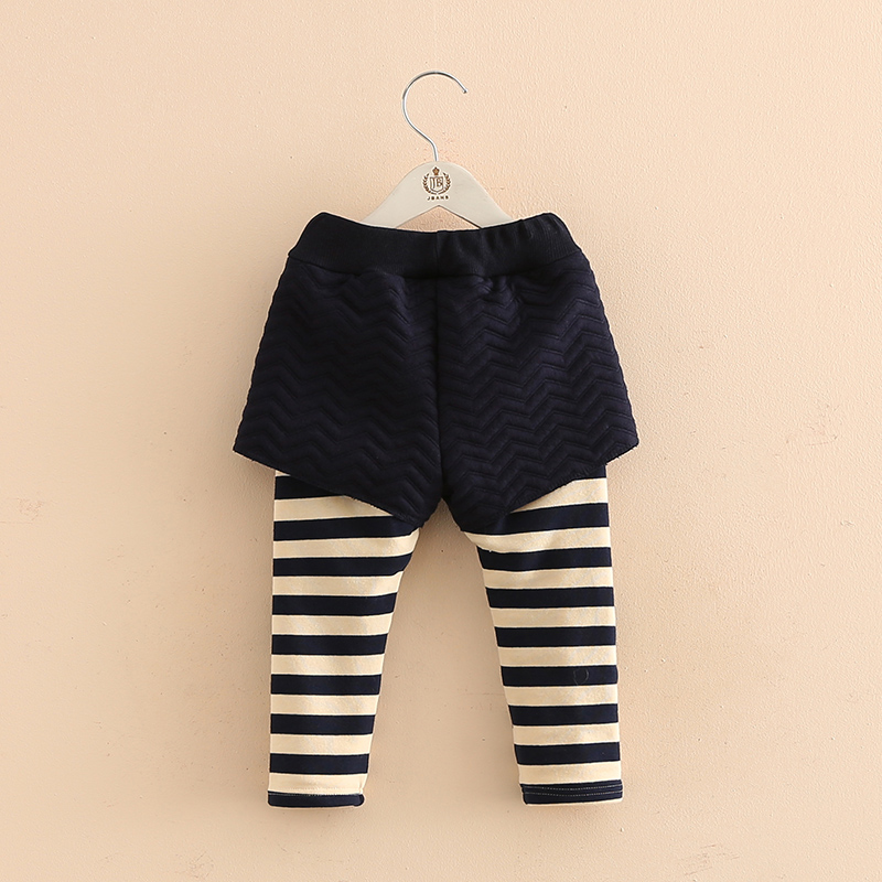 / 兒童假兩件打底褲 冬裝新款女童童裝加絨條紋長褲子kz-7892