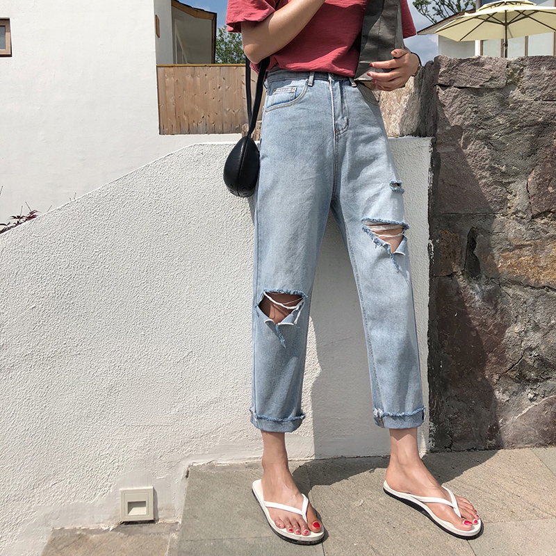 款式:水洗破洞牛仔褲