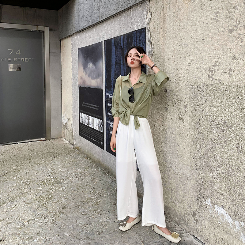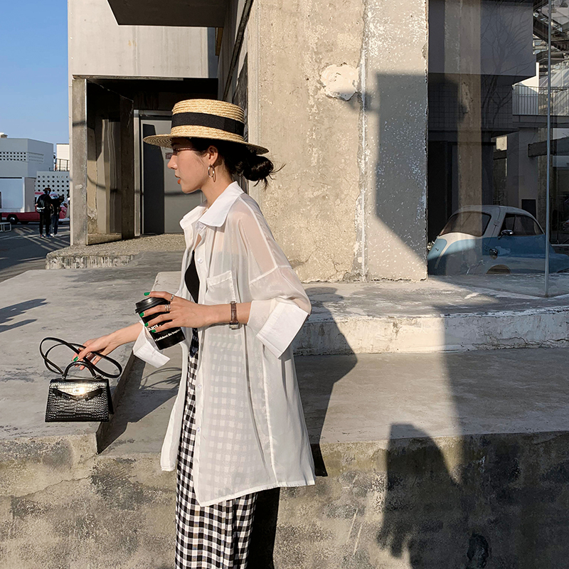 A7seven防曬襯衣女夏裝韓版寬松顯瘦百搭長袖白色薄款襯衫外套潮