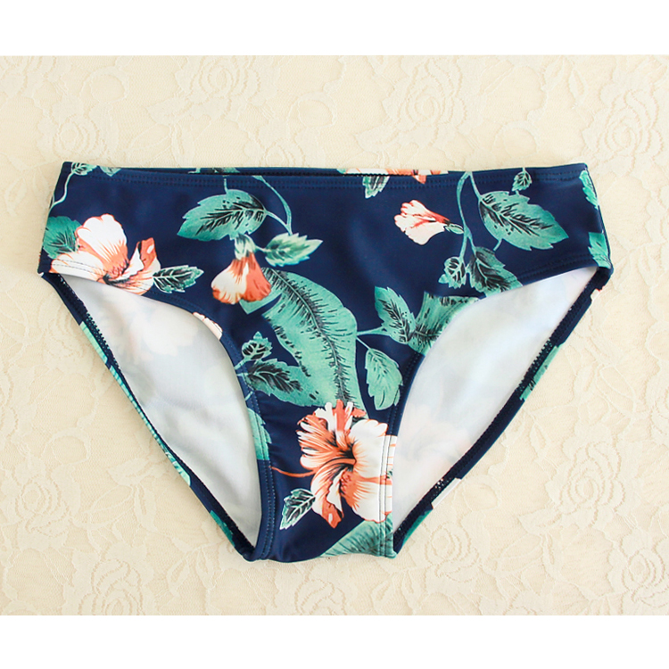 韓國時尚復古印花小胸聚攏綁帶分體泳衣女保守高腰裙式泳裝三件套