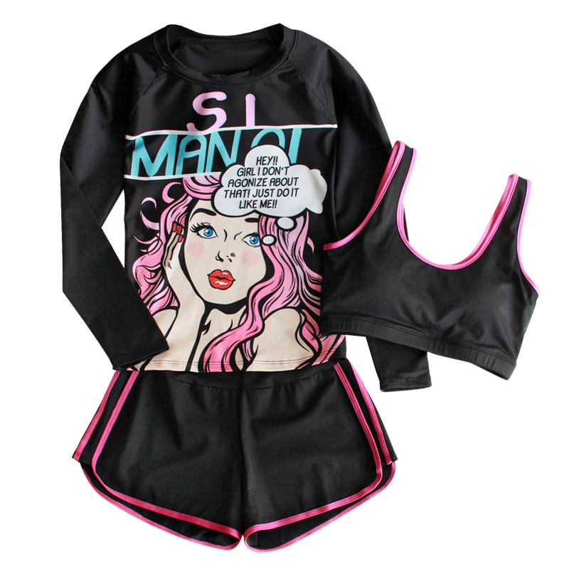 / 防曬泳衣女三四件套分體顯瘦保守平角卡通印花長袖潛水服韓國泳裝