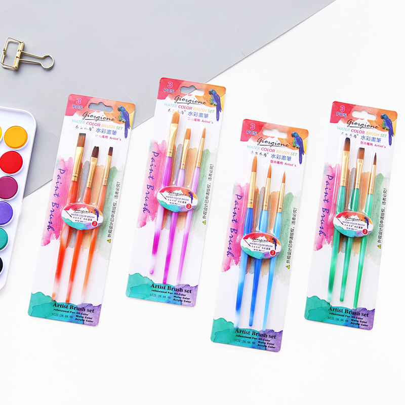 云木雜貨 水彩畫筆3支裝套裝 水彩筆尼龍毛水粉油畫顏料筆
