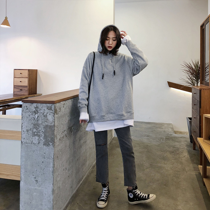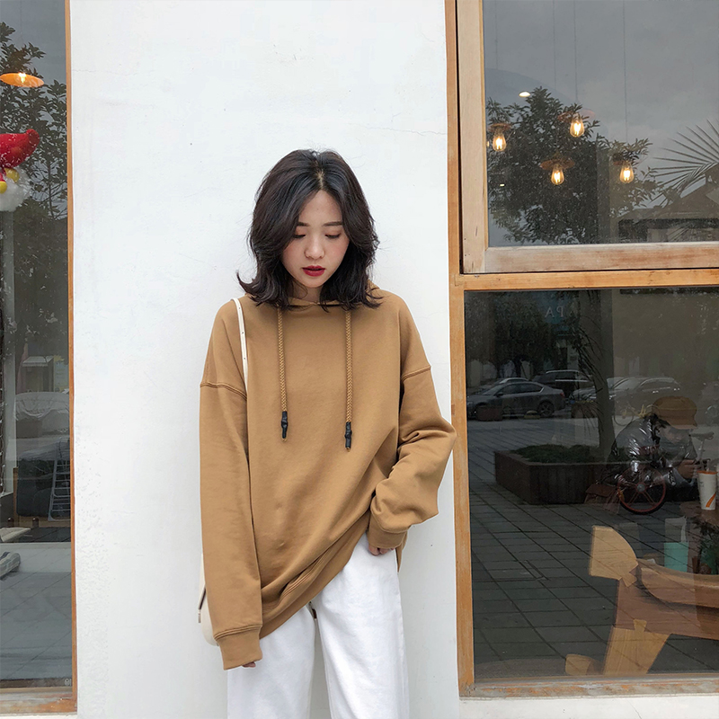 A7seven 衛衣女寬松春純色韓版2019新款連帽純棉百搭學生潮外套