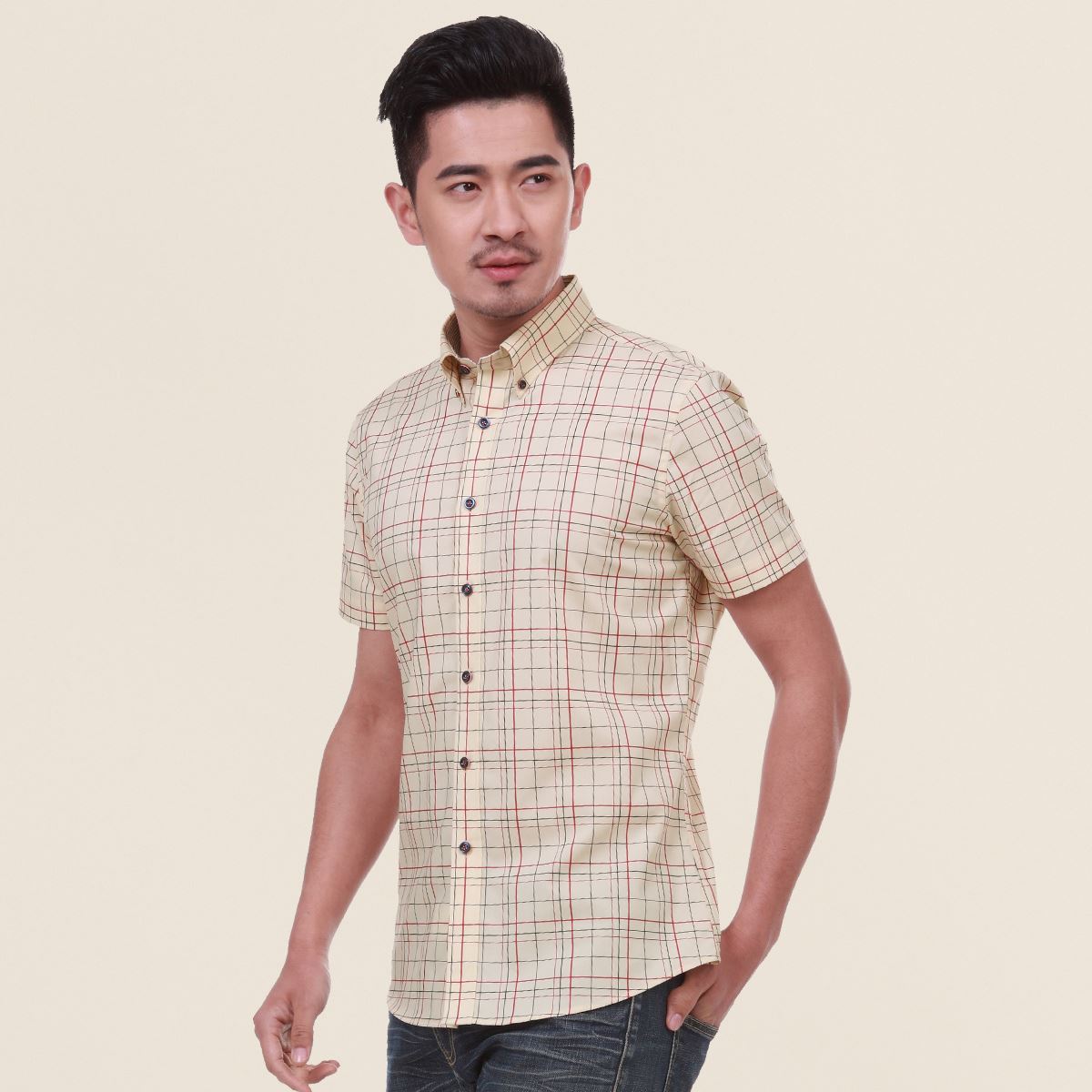 / 夏季新品時尚格子男士短袖襯衫純棉男裝免燙大碼襯衣薄款潮