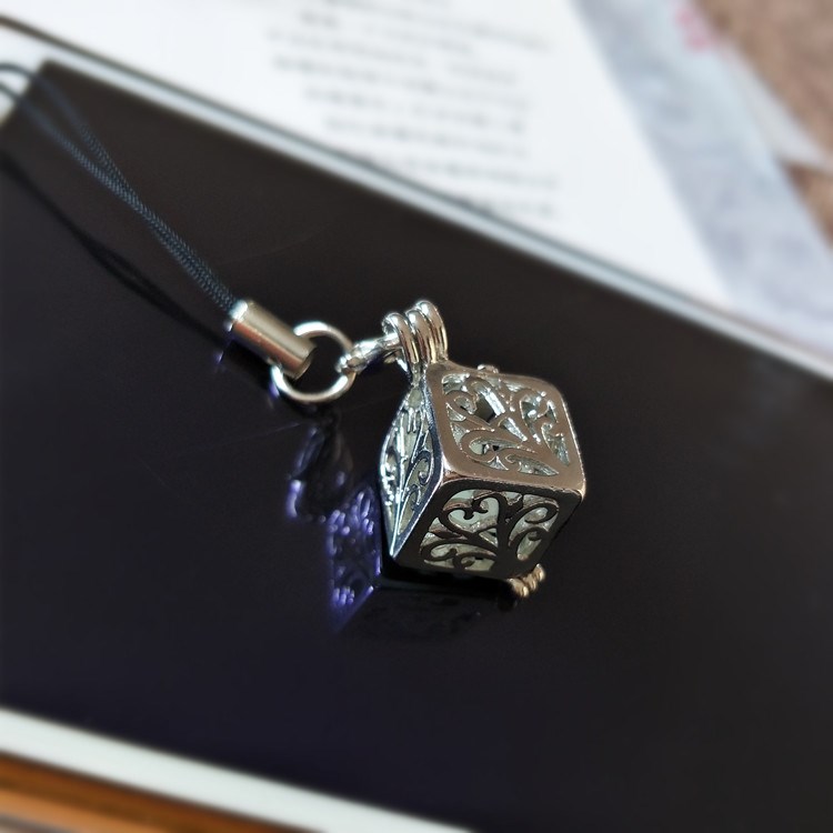 精美手工合金鏤空魔方,魔方邊長12mm,鏈子全長8CM左右。下單即送手機通用防塵塞