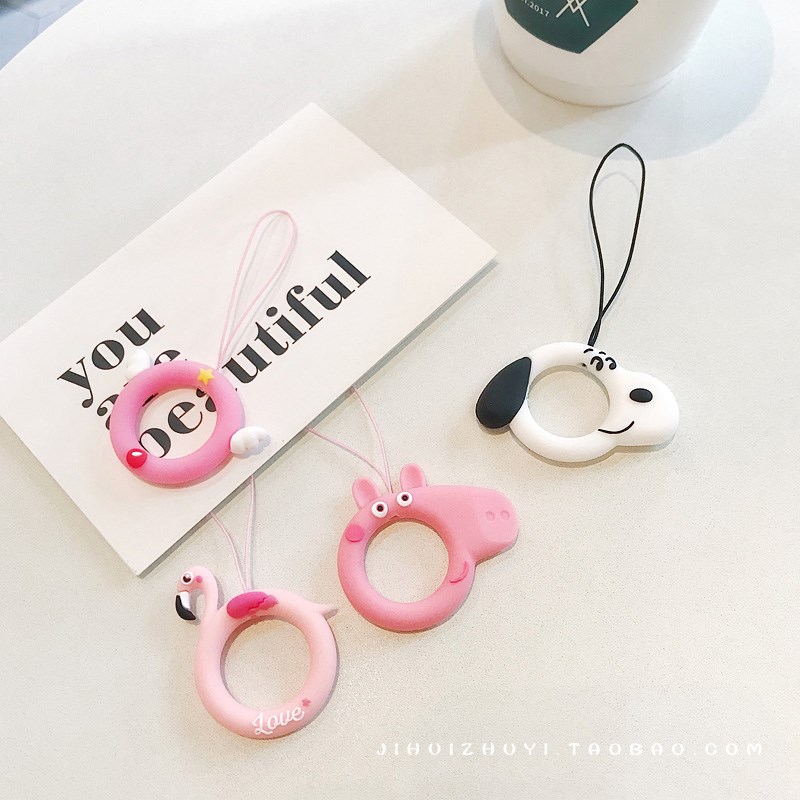 / 可愛卡通圈圈防摔指環扣小掛繩手機掛飾蘋果通用鑰匙扣韓國潮女款