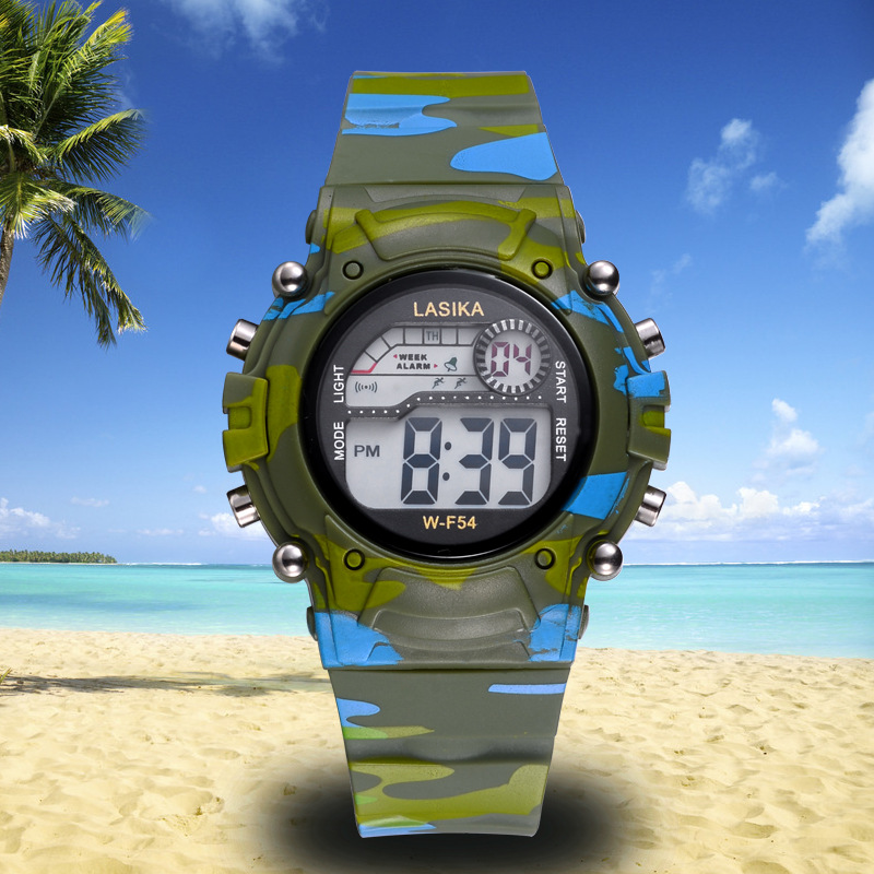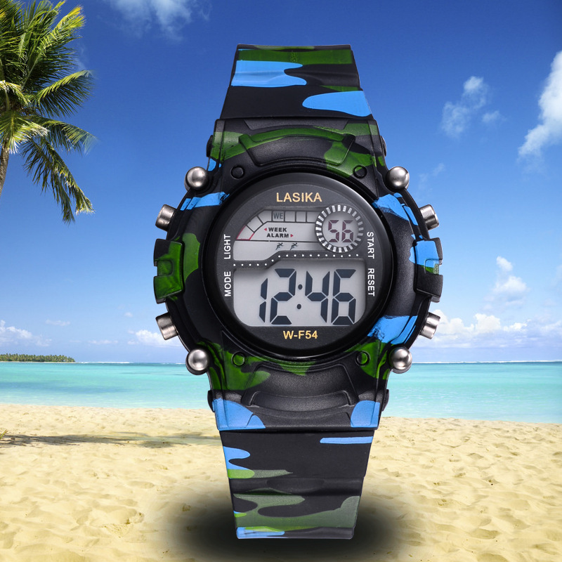 迷彩兒童手表男孩女孩電子表防水多功能夜光鬧鐘運動中小學生手表