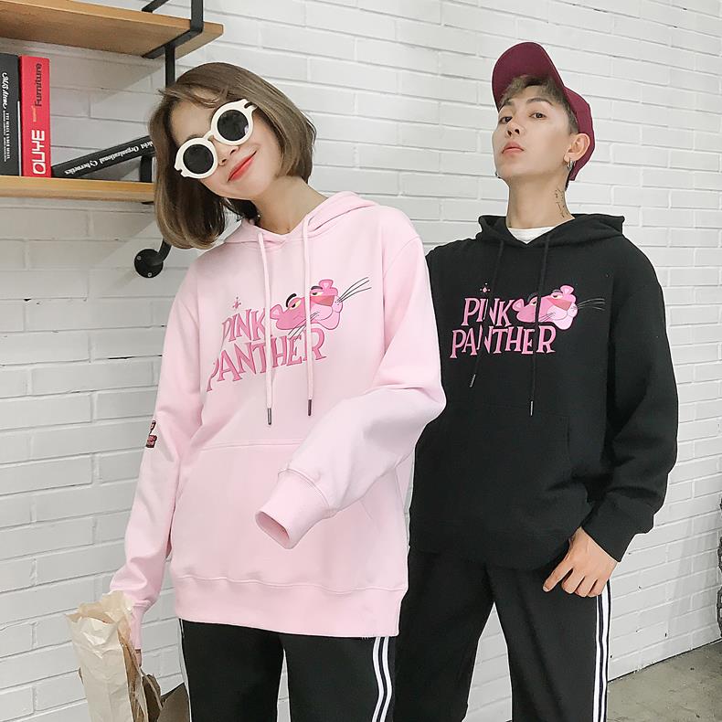 2017秋裝韓版可愛粉紅豹衛衣寬松連帽加絨衛衣女ins同款情侶裝冬