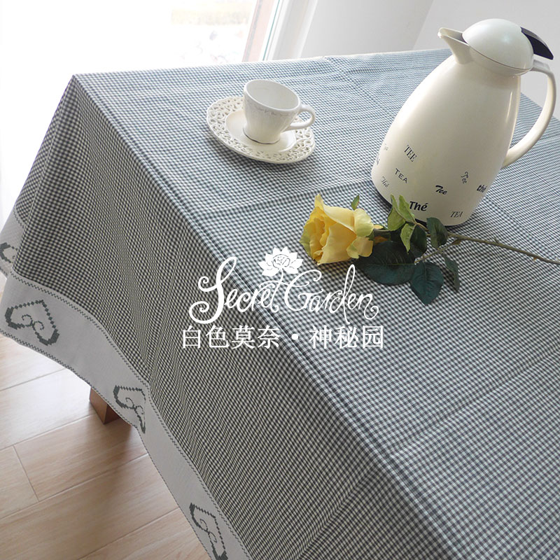 關于她:難得的鄉村風格精致設計,面料為密實的色織格子,環保不掉色,出彩的是包邊,白色底上點綴一串純手工十字繡花桃心,斜角收邊遠比一般的普通折邊更加講究,推薦收藏。
