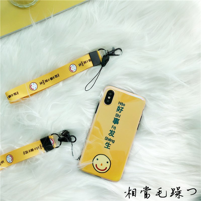 沈月同款好事發生蘋果X手機殼掛繩iPhone8plus笑臉掛件7P女款6S潮