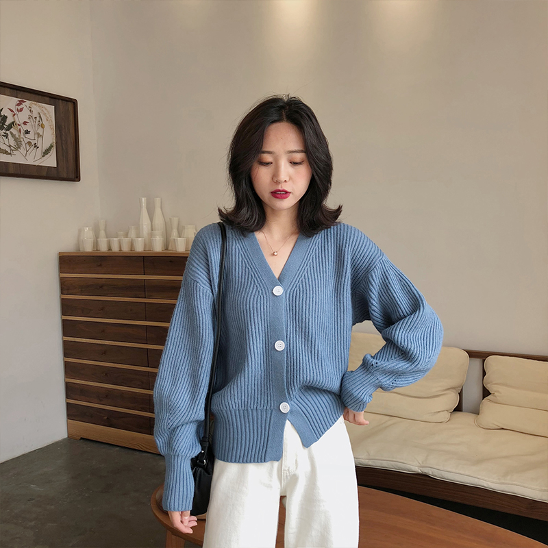 A7seven針織開衫女2019春秋裝新款V領韓版純色長袖學生時尚風外套