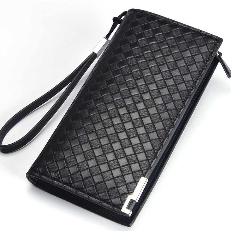 原創多功能格紋皮質手拿包男士錢包商務休閑長款拉鏈手抓包卡包