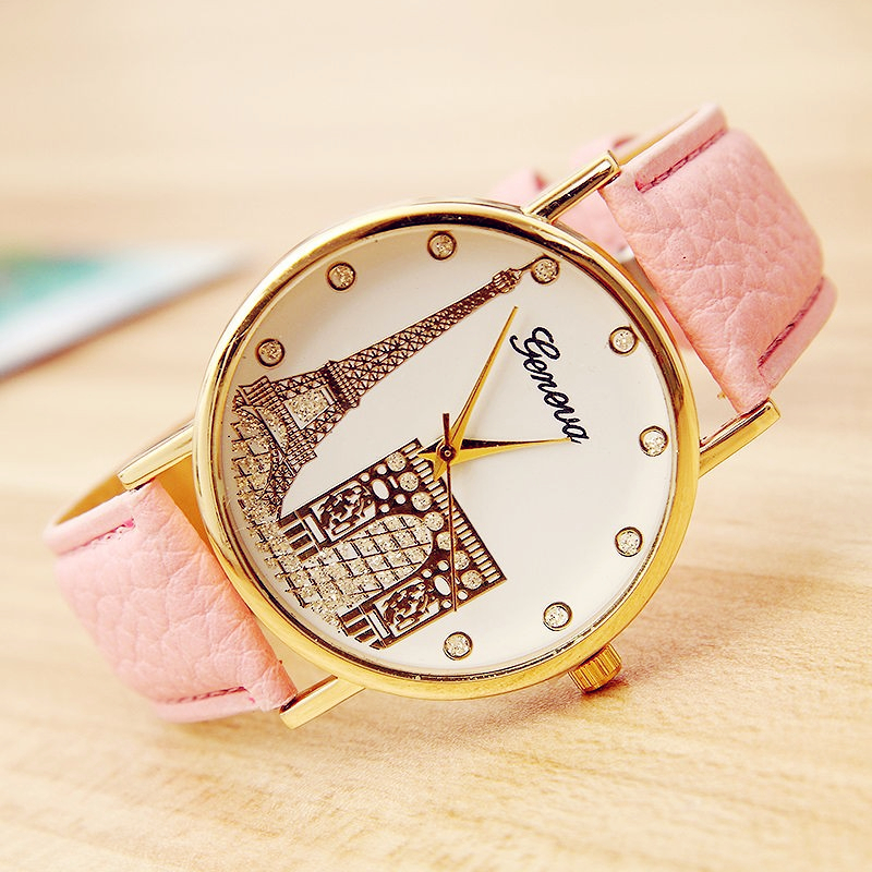 熱賣時尚小清新埃菲爾鐵塔皮帶手表男女情侶腕表學生手表9.9包郵