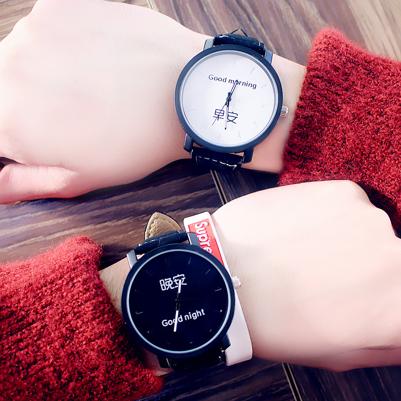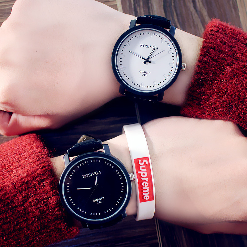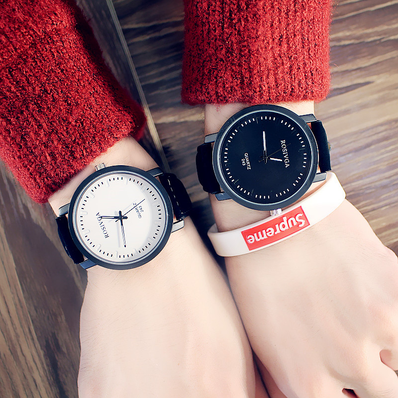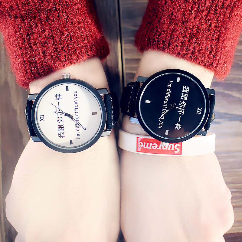 韓版原宿1314大盤手表潮流男女韓國簡約復古學生黑白情侶手表