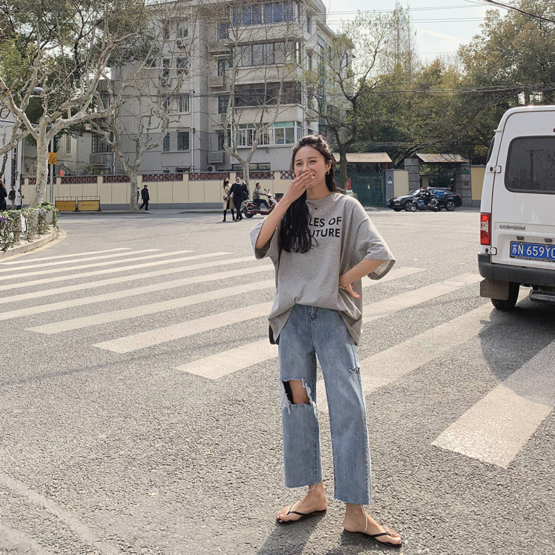 A7seven字母印花T恤女春夏新款短袖韓版顯瘦圓領休閑百搭學生體恤