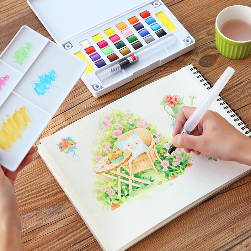 云木雜貨 24色固體透明水彩顏料套裝 便攜水彩畫材套裝戶外寫生