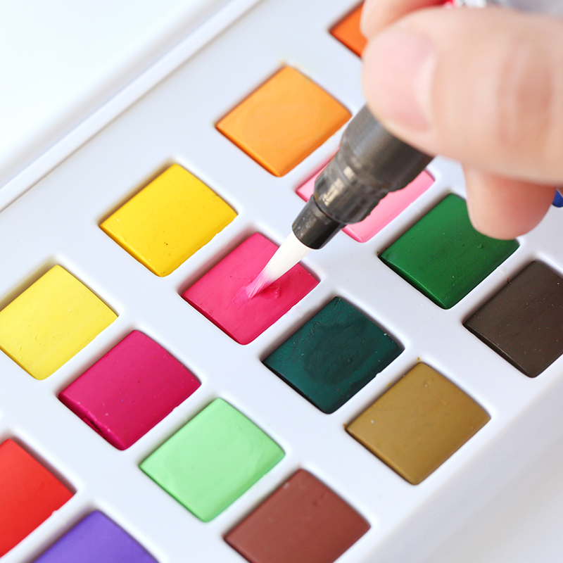 / 云木雜貨 24色固體透明水彩顏料套裝 便攜水彩畫材套裝戶外寫生